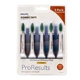 This package includes 5 Sonicare ProResults brush heads. Philips Sonicare ProResults brush head for superior oral health. Replace every three months. Material brush head PCTA, TPE, with nylon bristles.